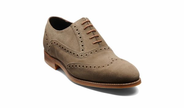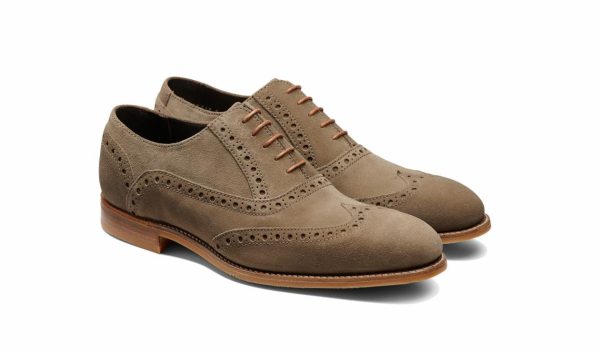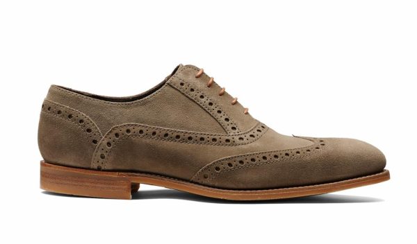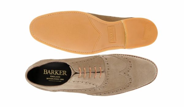 Barker Shoes Grant Men’s Brogue – Light Visone Suede Dress Shoes | Handcrafted in England