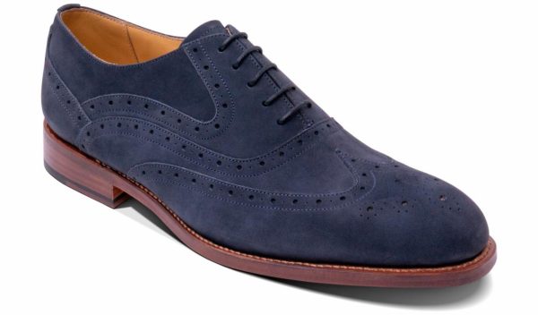 Barker Shoes Liffey Men’s Navy Nubuck Oxford Brogues – Handcrafted Formal Dress Shoes