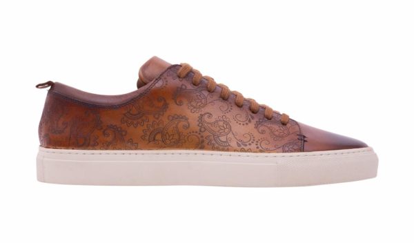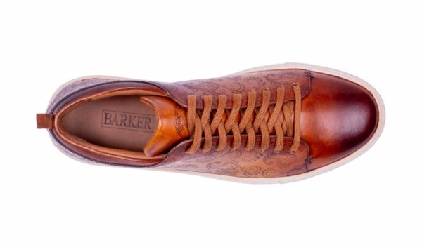Barker Shoes Men’s Paisley Sneakers – Hand-Painted Cedar Laser Detail Leather Casual Shoes