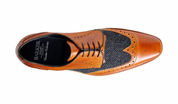 Men Derbys | Barker Shoes Jackson – Cedar Calf / Blue Tweed