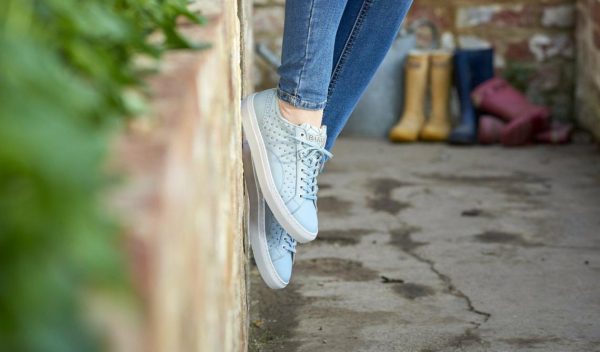 Women Derbys | Barker Shoes Isla – Pale Blue Calf / Studs